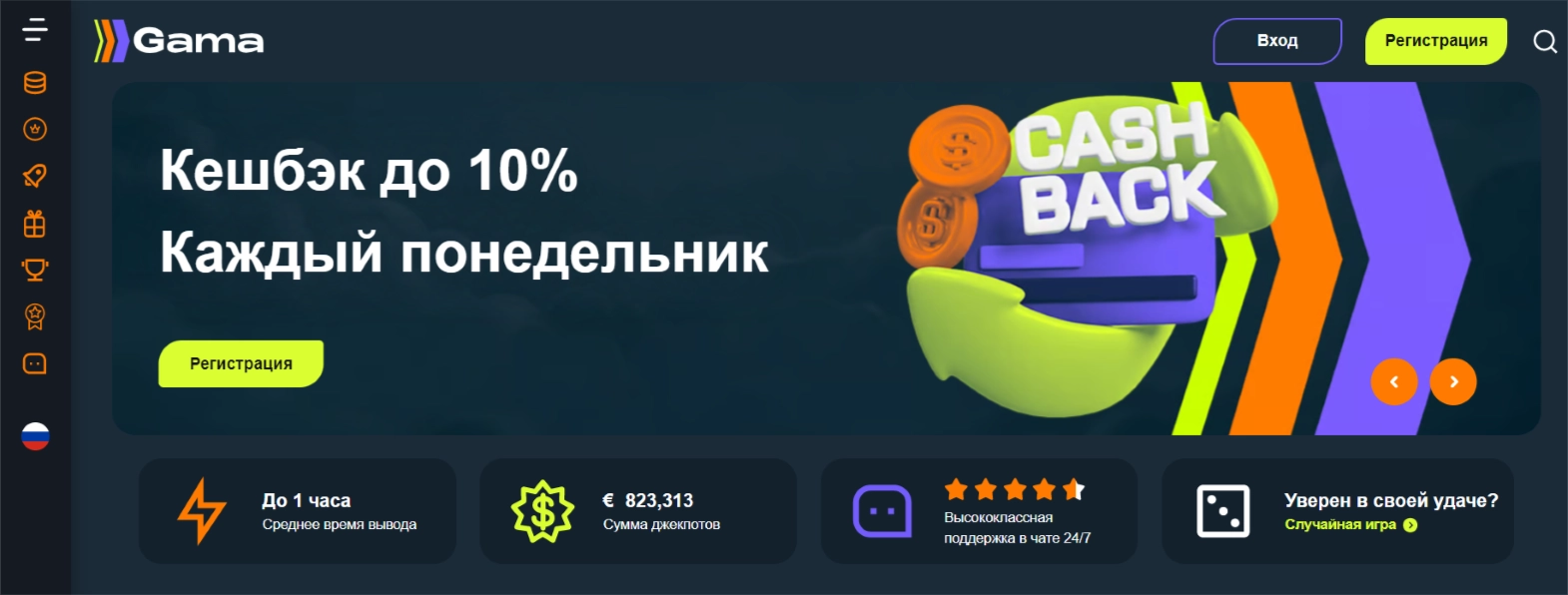 Кэшбек Gama Casino – получай возврат ставок в самом ярком казино Рунета